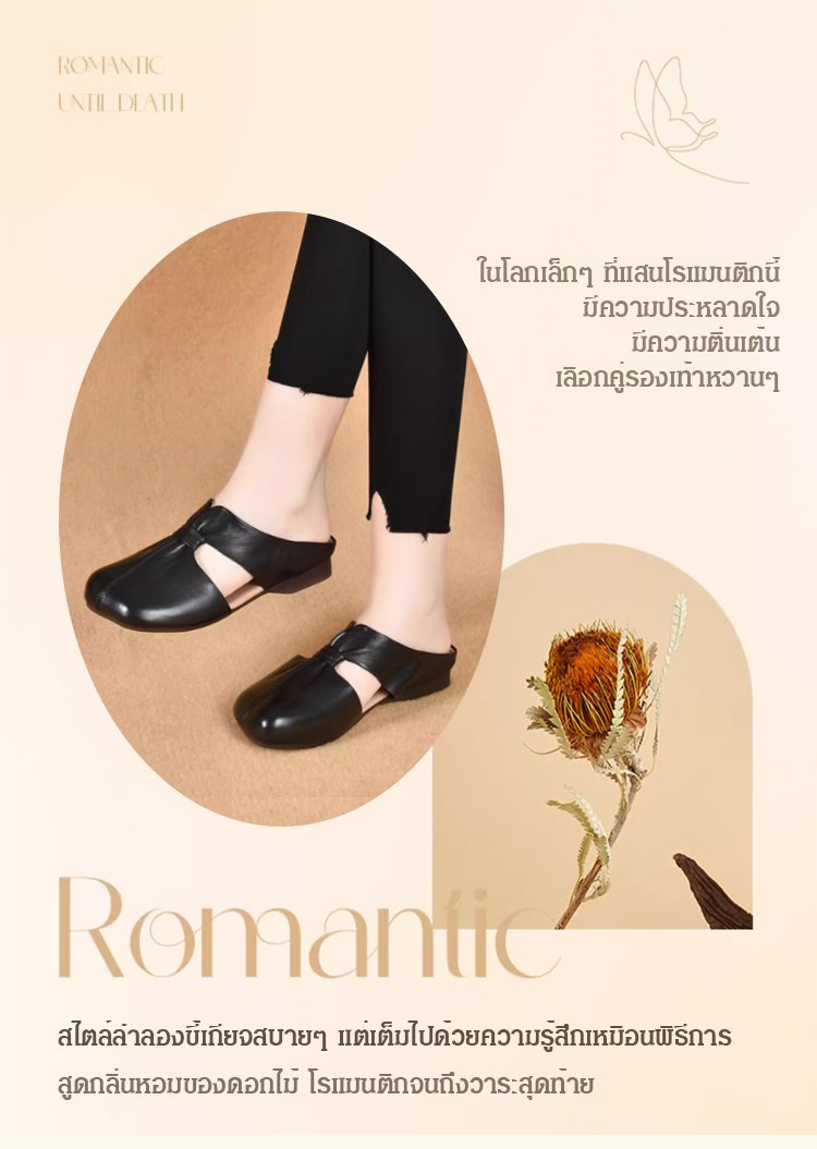 【หนังวัวชั้นแรก】รองเท้าแตะผู้หญิงแบบหัวปิด เปิดส้น